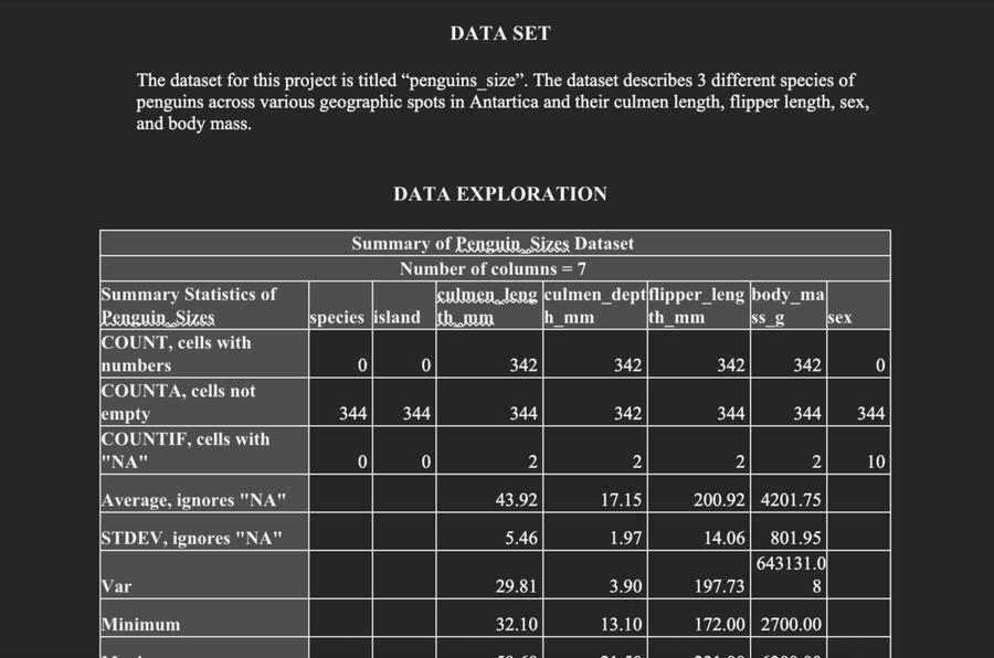 In May 2025, I explored the Palmer Archipelago (Antarctica) penguin data penguin_size dataset. This project investigated the relationship between penguin flipper length and their mass.Questions of interest