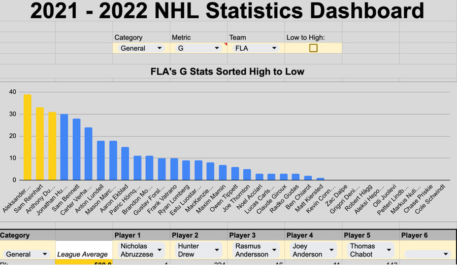 Google Sheets - NHL Player Stats