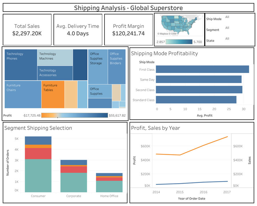 In August 2025, I explored the Global Superstore dataset. This project visualizes different shipping methods and their profitability at different granularities for data from Jan 2014 - Jan 2018.Questions of interest